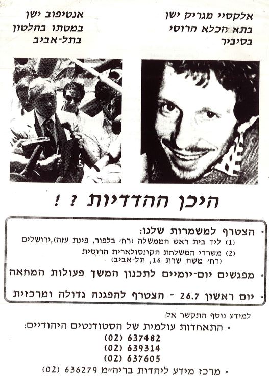 ליהודי ברית המועצות והיתר לעלייתם לישראל. כמו כן התקיימו מצעדים, עצרות, מפגני מחאה