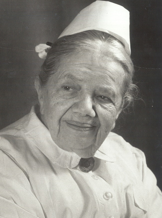 האחות זלמה במהלך ביקור באחת ממחלקות החולים עם ד"ר וולך. שימשה במשך שנים כיד ימינו (A613\33)