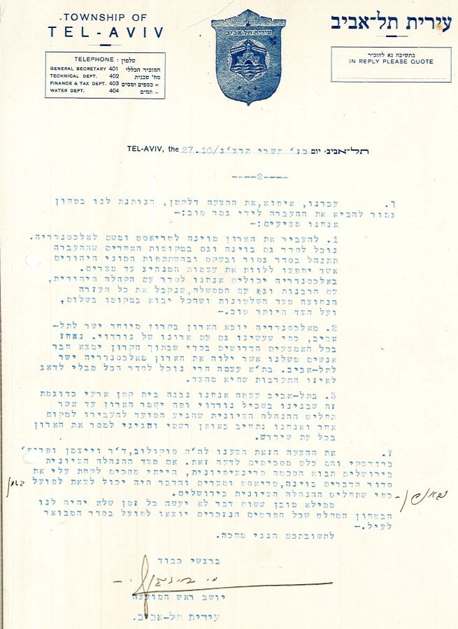 הצעתו של מאיר דיזנגוף, ראש עירית תל אביב, להעלאת עצמות הרצל, 1932 (S25\1355)