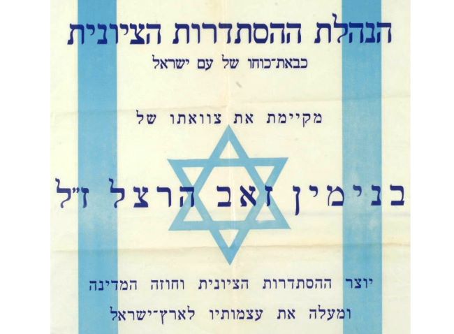 כרזה של ההסתדרות הציונית לרגל העלאת עצמות הרצל לישראל, 1949 (KRA\2241)