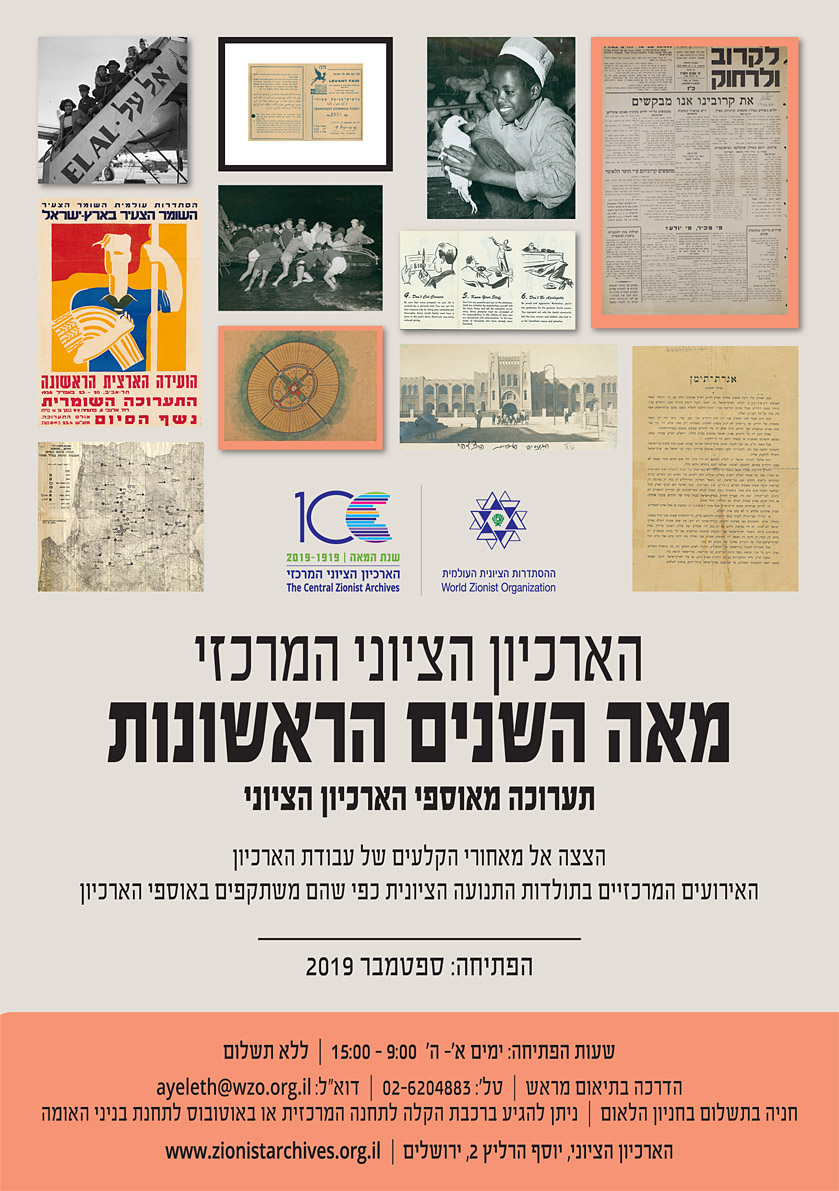 תערוכה חדשה נפתחה באולם הכניסה של הארכיון הציוני: "מאה השנים הראשונות". התערוכה מציגה את קורות הארכיון ואת התפתחותו מאז היווסדו, ומאפשרת הצצה אל מאחורי הקלעים של הפעילות הארכיונית: אחסון ושימור, רישום, קיטלוג והנגשה. הפריטים בתערוכה מייצגים את האירועים המרכזיים בתולדות התנועה הציונית, כפי שהם משתקפים באוספי הארכיון, ומהווים הצצה בלבד לעושר הרב השמור בו.