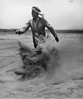 עולה חדש צועד בחולות באר- שבע, יולי 1950. צולם על ידי זולטן קלוגר עבור קרן היסוד (PHKH\1287360)