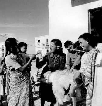 עולי הודו משוחחים עם שכניהם האירופים. דצמבר, 1951 (PHPS\1333673)