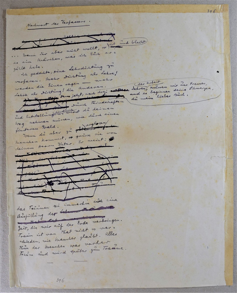 בשלבי הסרת הסלוטייפ הישן ותיקון הקרעים מצדו האחורי של הדף, עמ' 396.