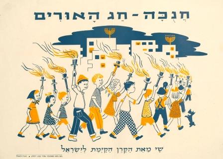 אור הנרות בחנוכייה מתערבב עם אורות הלפידים של מצעדי חנוכה. מוטיב הגבורה מופיע עם הסמלים המסורתיים של החג. חנוכה הוא חג שמצליח לשלב בין הסיפור הקדום של החשמונאים ובין תוכן חדש שנוסף לו במאה ה-20. כל אלו באים לידי ביטוי בכרזות הצבעוניות והמקסימות שלפניכם. חנוכה שמח!