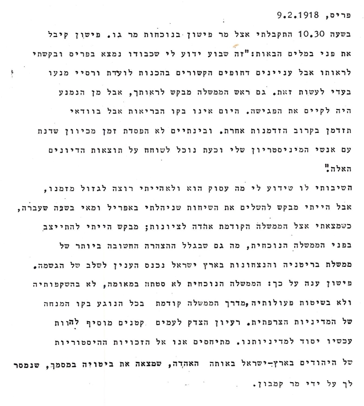 של בריטניה. סוקולוב תיאר בפנקסיו האישיים את שליחותו לפריז ואת פגישתו עם שר החוץ