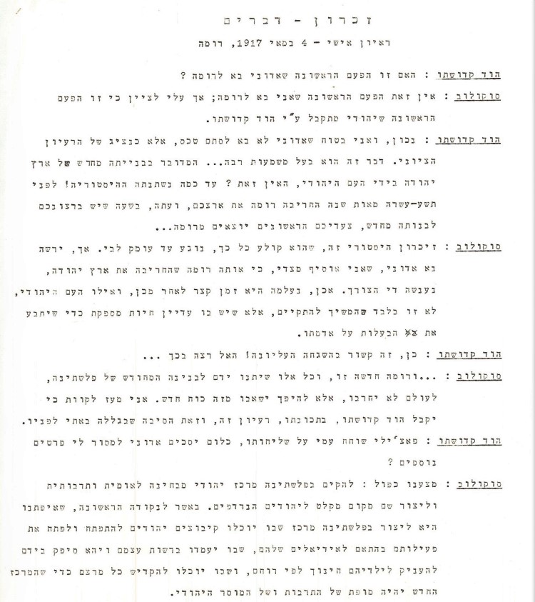 הריאיון של נחום סוקולוב אצל האפיפיור בתרגום לעברית, 4 ביוני 1917