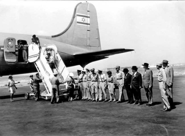 נחיתת המטוס בשדה התעופה לוד בנוכחות נכבדים (PHG\1010264)