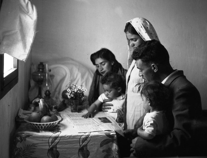 משפחה מעיראק שעברה ממעברה לשיכון קבע ביישוב קדימה. אוסף קרן היסוד (NKH\401940)