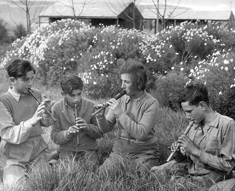 עולה משוויץ מלמדת עולים מעיראק ומצפון אפריקה לנגן על חלילית, קיבות להבות הבשן, ינואר 1952.