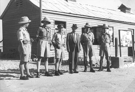 משה שרת (במרכז) מבקר חיילים של היישוב היהודי במצרים, 1942 PHAL\1611072))