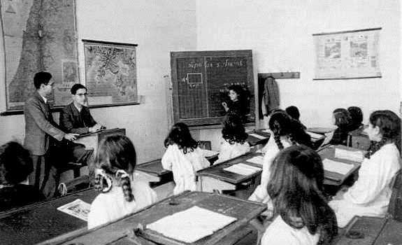 בית ספר לבנות בטריפולי, לוב, 1947. על הקיר מפת ארץ ישראל (PHG\1058415)