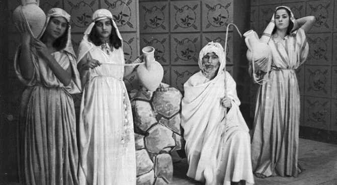תלמידות בית הספר עם תחפושות להצגה "רבקה ואליעזר", טריפולי, לוב, 1947 (PHG\1058432)