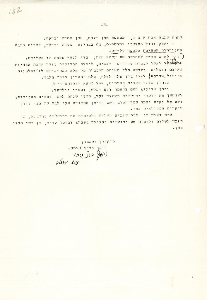 מיוחס חותם על המכתב שכתב "איש ירושלים" – כינוי שמבטא את החשיבות שהוא נותן למקום שהוא גר בו.