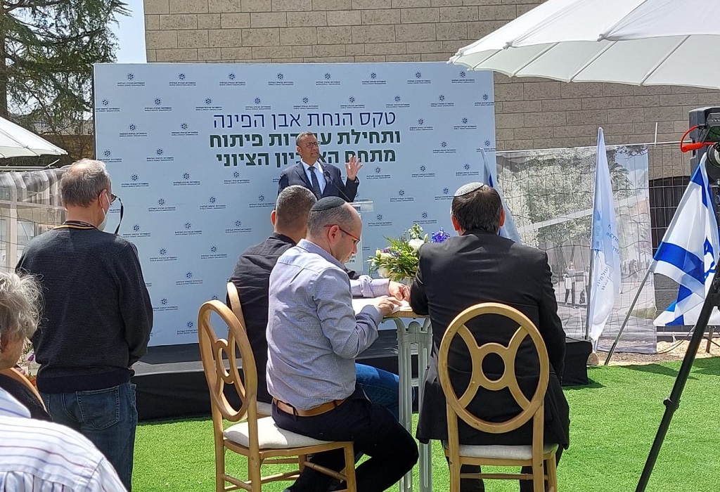 ראש העיר ירושלים משה ליאון נואם בטקס הנחת אבן הפינה