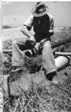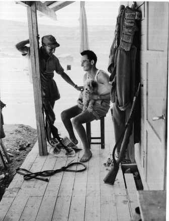 פריץ שלזינגר עם המצלמה על הצוואר, מימין בשנת 1953 ומשמאל בזמן מבצע קדש, 1956.