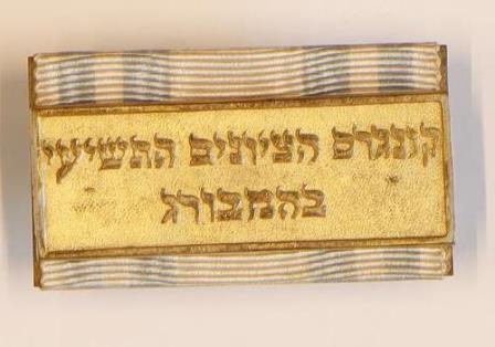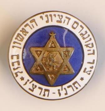 לצערנו, סיכת הקונגרס הראשון לא נשמרה באוסף, אך הסיכות שנעשו לציון שלושים שנה לאירוע, הם העתק של הסיכה עליה הופיע סמל הקונגרס: דמות אריה נתונה בתוך מגן דוד ושבעה כוכבים -סמלים שאומצו על ידי ראשי התנועה הציונית.
