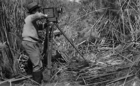 הכנת הפילם ע"י "מרש אוף טיים",  מצלמים אניית פליטים שמגיעה לנמל חיפה. (NKH\483640)צלם מצלם במצלמת קולנוע את הצמחיה באגם החולה? שנות השלושים? (PHKH\1302678)