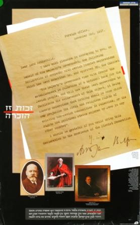 הצהרת בלפור עם תמונתו של לורד בלפורממשלת בריטניה מפרסמת את הצהרת בלפור, בחתימת שר החוץ שלה, הלורד ג'יימס ארתור בלפור. ההצהרה – המופנית ללורד ליונל רוטשילד אשר מתבקש להביאה לידיעת "הפדרציה הציונית" – כוללת הבעת תמיכה בייסוד "בית לאומי" ליהודים בארץ ישראל. שמחה עצומה ברחבי העולם היהודי, משני עברי החזית. ההצהרה נתפסת כ"אתחלתא דגאולה".