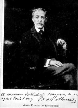בפריז נולד הברון אדמונד ג'יימס דה רוטשילד. "הנדיב הידוע", כפי שנודע הבן השלישי למשפחת רוטשילד, הפך לימים לתומך העיקרי של העלייה הראשונה. בניגוד לשני אחיו הוא לא נטה לכיוון עסקי הבנקאות המשפחתיים, ונמשך לעולם הרוח והאמנות. בעקבות הפוגרומים ביהודי רוסיה בשנות ה- 80 של המאה ה- 19 הבשילה בקרבו ההכרה, שפתרון ה"בעיה היהודית" נמצא בעלייה לא"י ובחידוש היישוב היהודי.