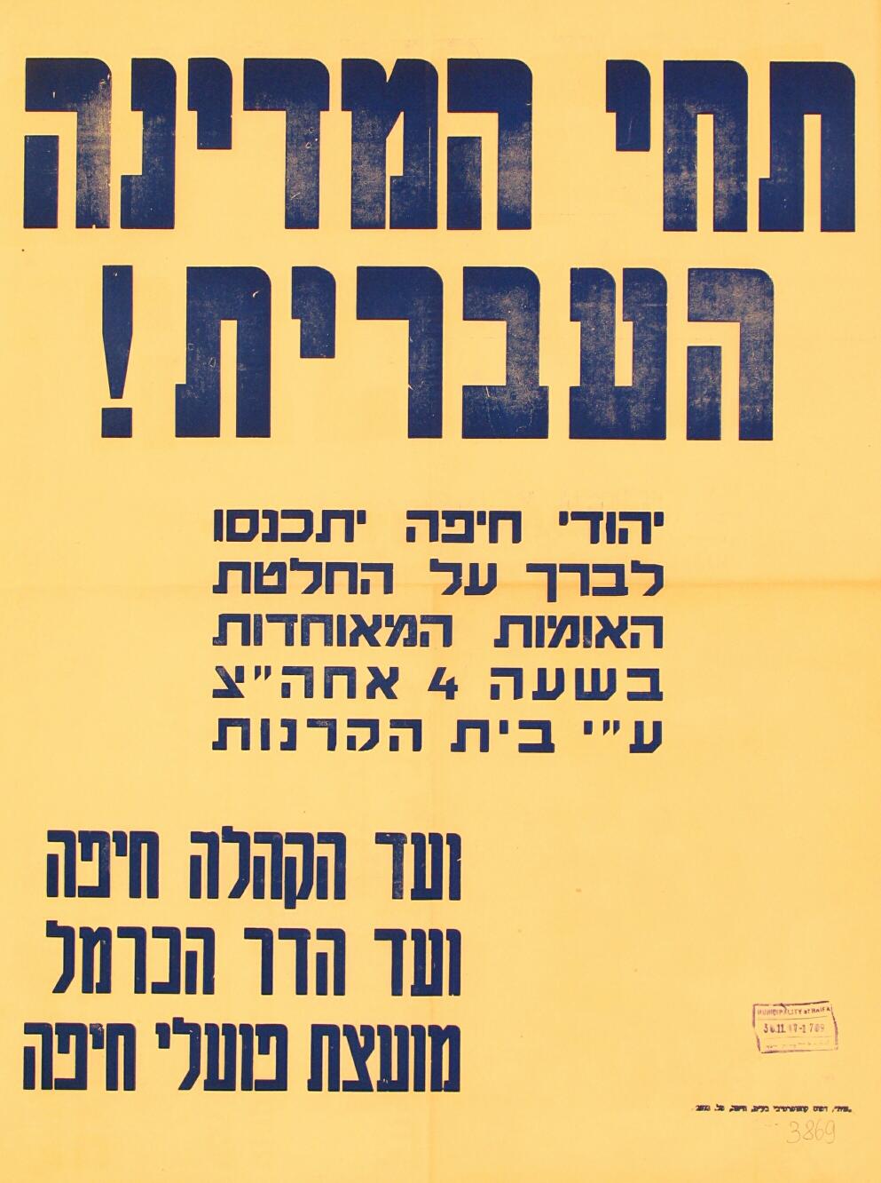 בארכיון הציוני שמורים תיקי המחלקה המדינית, מהם אפשר ללמוד על הפעילות המדינית הנרחבת של מנהיגי התנועה הציונית להקמת בית לאומי ליהודים בארץ ישראל. החלטות חשובות ואתגרים רבים עמדו על הפרק עם ההחלטה על הקמת מדינה, כמו למשל השאלה אם להכריז על הקמת המדינה מיד עם סיום המנדט הבריטי. תצלומים מאוסף התצלומים של הארכיון הציוני מתעדים את האירוע הדרמטי.