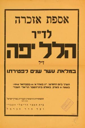 ד"ר הלל יפה - הרופא וידיד האדם העובד"היישוב העברי בכלל ובמושבות בפרט, לא ישכח את שרותו המסורה והמצוינת לציבור החקלאי בארץ, במשך שנים רבות, שנות סבל, רעב ומגפות קשות. שמו של ד"ר הלל יפה חרוט בלבבות אלפי בני המושבות בתור סמל של רופא–אדם, רופא–אזרח, ורופא–ידיד..." (ד"ר ר. כנצלסון, מנהל קופת חולים עממית במושבות)