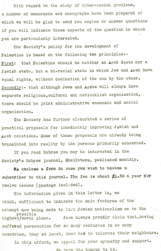 There was a certain amount of tension between Brit Shalom and institutionalized Zionism, but the movement's members, it's important to note, saw themselves, first and foremost, as Zionists. For them, their vision was the most accurate realization of Herzl's writhing, who spoke of a Jewish national revival as well as peaceful coexistence with the Arabs.