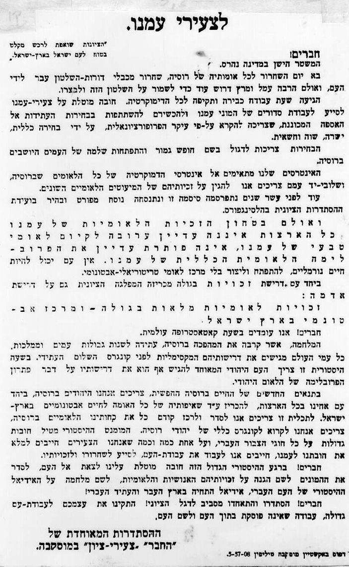 proclamation made by "Tze'iri Tzion" and the organized institution of "The Comrade" in Moscow after the Bolshevik revolution, 1917 (PHZPR\1252581)