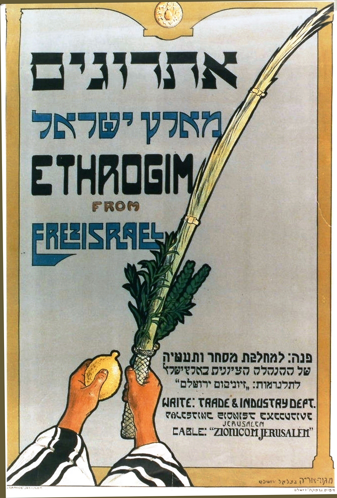 Right: Poster advertising citrons from Palestine, 1920's. Designed by Meir Gur Aryeh (KRA\219)