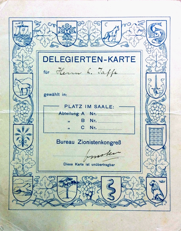 Leib Yaffe's Delegate Card at the 10th Zionist Congress, Basle, 1911 (A13\2)