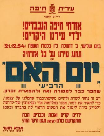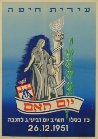 As “Family Day” is approaching, we decided to display a few posters that relate to the subject of the family. In 1947, the people in Palestine - like people around the world - began to celebrate one day of the year in honor of the mothers. The date chosen in Palestine to mark “Mother’s Day” was the Hebrew date of Lamed BeShvat, the 30th of Shvat, the date Henrietta Szold died. Henrietta Szold was the head of the Hadassah Organization, and was a mother figure to a lot of children who immigrated to Israel without their families, mainly through Youth Aliyah.