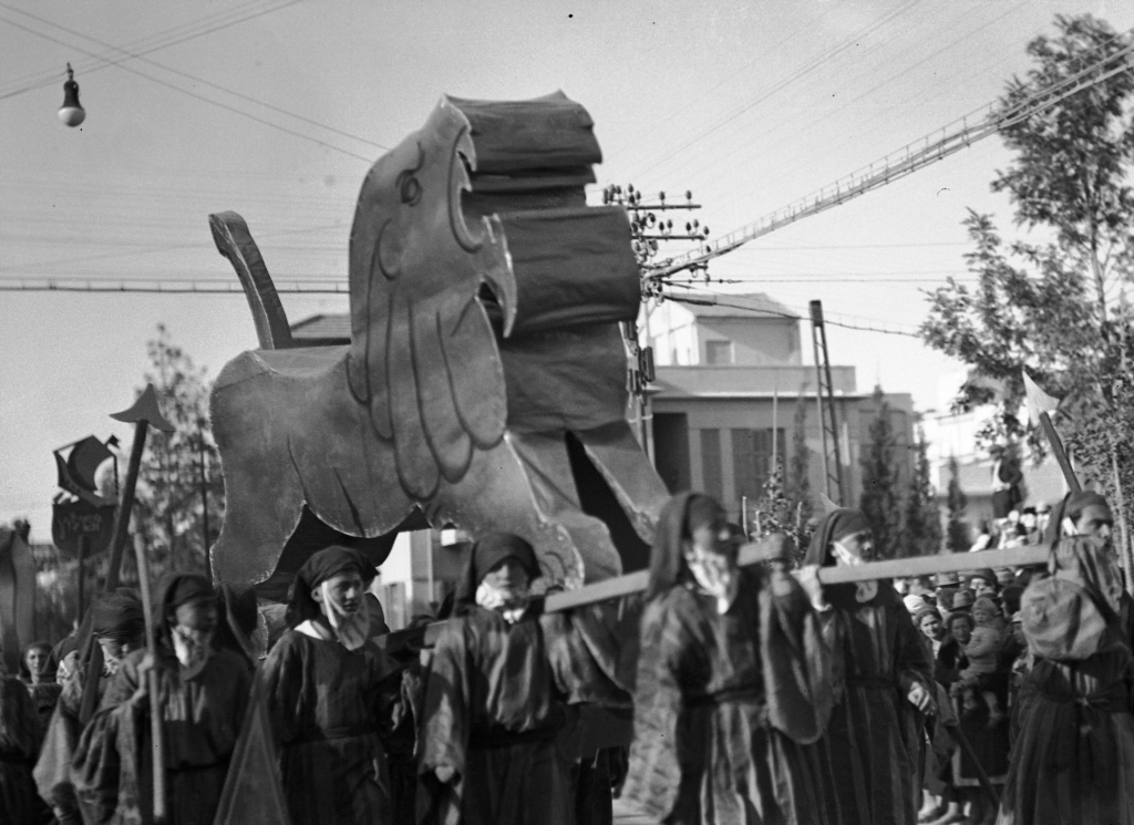 The CZA invites you to join the Purim celebrations and take a look at the “Adloyada” that was held in Tel Aviv, apparently in 1934, and was photographed by Zvi Oron. Have a happy and fun Purim!