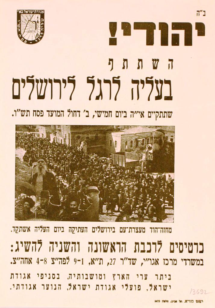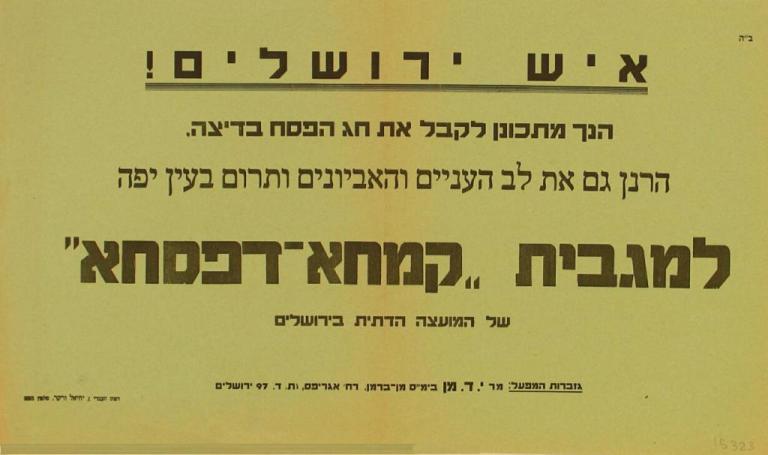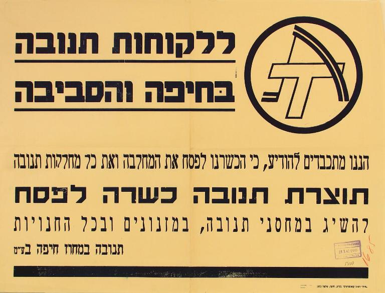 The Central Zionist Archives holds a rich and diverse collection of posters and handbills from the period of the Yishuv and the early years of the State of Israel. The posters and handbills were displayed on bulletin boards around the cities, and that way messages and information were transferred to the wider public. The posters and handbills were used to address a wide array of subjects: Zionism, settlements, security, art, theater, health and more.
