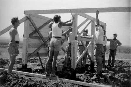 “Tower and Stockade” (in Hebrew: Homa U’Migdal) is the name of an operation that the leaders of the Yishuv initiated in Palestine, during which 52 new settlements were founded. This operation was a response of the Yishuv to the 1936-1939 Arab Revolt and the restrictions the Mandatory authorities placed, both on the building of new Jewish settlements, and on the amount of Jewish immigrants allowed into Palestine. The building of each settlement began at night. First, the guard tower and the defense stockade were set up – that is why the operation was named “Tower and Stockade”. According to an old Ottoman law that was still valid during the Mandate period, the destroying of a building was not allowed after the roof had been erected. For this reason the British did not destroy the "Tower and Stockade" settlements which had not received building permits. The equipment needed for building the settlements was organized in advance, which allowed for the quick building of new settlements. A wide range of movements in Palestine took part, from Hashomer Hatzair to Beitar.