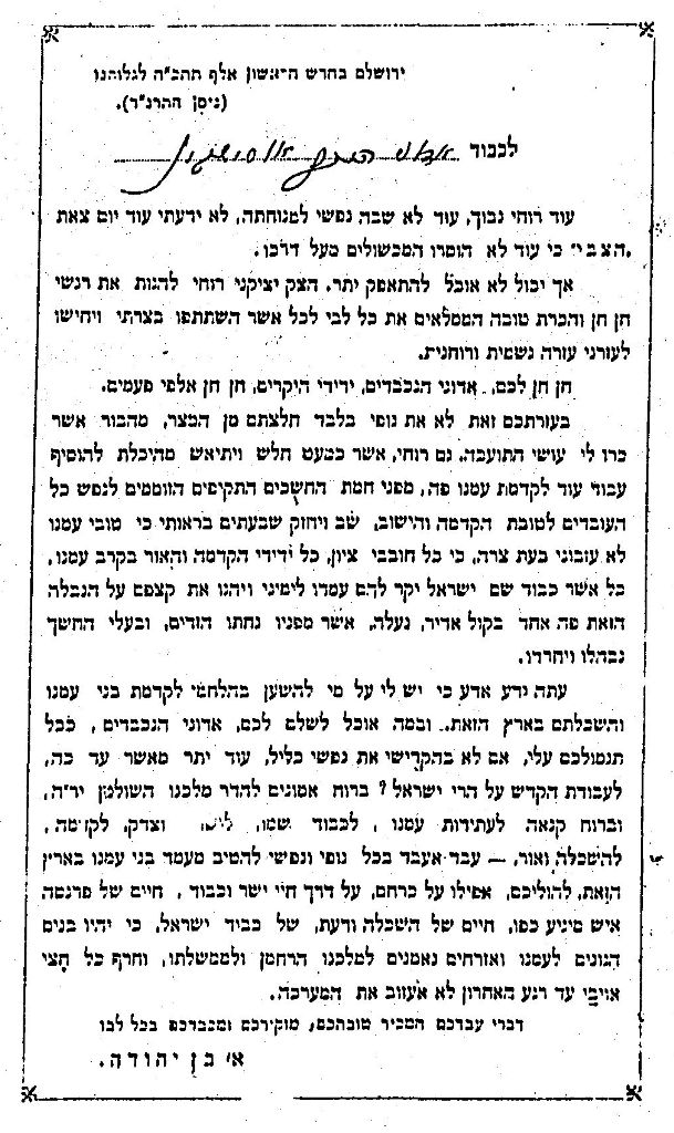 Among the new arrivals were Eliezer Ben-Yehuda and his wife Dvora. They chose to live in Jerusalem. At first Eliezer worked for the “Havazeleth” journal, and later founded two other newspapers. In those days, Hebrew was in use as a written language and in religious rituals. Ben-Yehuda wanted to turn Hebrew into a spoken language. After the birth of his son, Itamar, he spoke only Hebrew with him. He tried to convince other families in Jerusalem to speak only Hebrew with their children, but he had little success. Ben-Yehuda wrote textbooks on the Hebrew language, and established “The Hebrew Language Committee” in 1890. He also worked on a comprehensive Hebrew dictionary. The use of Hebrew, however, became common only after the "War of the Languages” – a dispute in the Yishuv about the use of German during studies at the “Technion College". The supporters of the use of Hebrew won, and thus the amount of people who made daily use of Hebrew in the Yishuv, expanded.