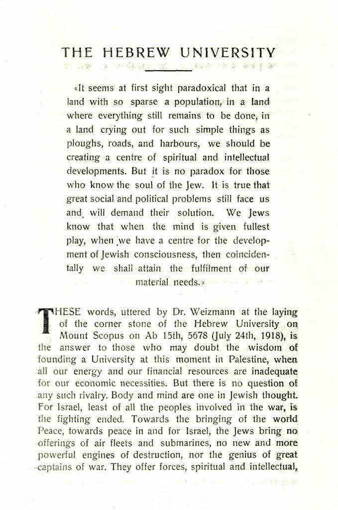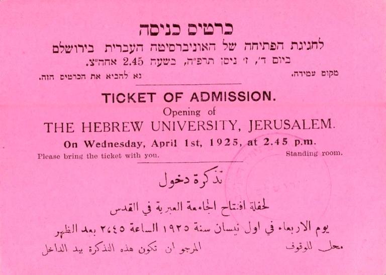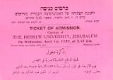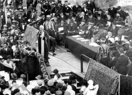 The First World War put the plans for the University on hold. After the War ended in 1918, and permission from the British authority was given, a cornerstone ceremony for the university building was held. Seven years afterwards, on April 1st 1925, the opening ceremony was conducted. The ceremony was very impressive and many respected figures made speeches: Lord Balfour, Chaim Weizmann, Rabbi Kook, Sir Herbert Samuel and Hayim Nahman Bialik. Thousands of guests participated at the ceremony, including representatives of universities from around the world.