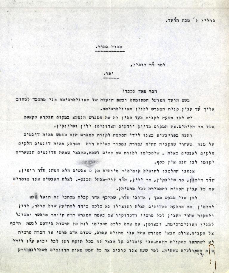 Zvi Hermann Schapira was the first to suggest the idea of establishing a Hebrew University and raised the issue at the First Zionist Congress in 1897. Years later, discussions were held in various Zionist institutions about the character of the university and the implementation of the idea.The actual decision to open a university in Jerusalem, in which Hebrew would be the primary language, was taken at the 11th Zionist Congress. The WZO signed an agreement in 1914 with a protestant lawyer named John Gray-Hill, who was pro-Zionist, to buy his mansion on Mount Scopus. The land was designated for the university building.