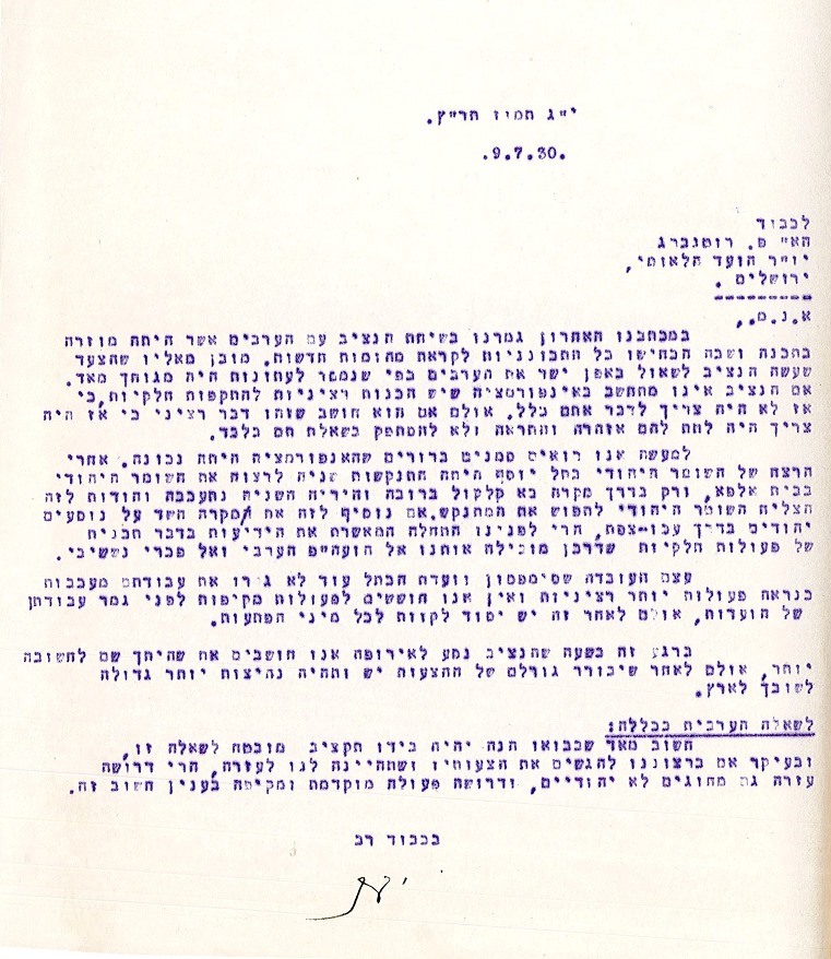Rutenberg wrote in his will, a few weeks before his death: "The split in our people to sects, ethnic groups and political parties had always worked against us. This war between brothers had led us to trouble, and if we won't cease it will destroy us... whether we like it or not, we are in the same boat - let's understand each other and be brothers for creation, operation and building". (The quote from: Tidhar, D. (1947). Encyclopedia of the Founders and Builders of Israel (Vol. 2, p. 866-868)