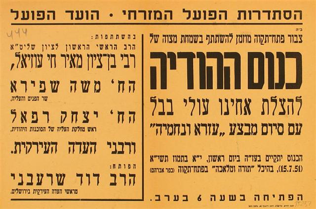 The state of Israel initiated several operations to bring Jews from the Diaspora to Israel. Operation "Ezra and Nehemia" was one of them. The Central Zionist Archives include some emotional photographs of the Jewish migrates to the young state, as well as correspondence regarding the operation in the aliyah division.