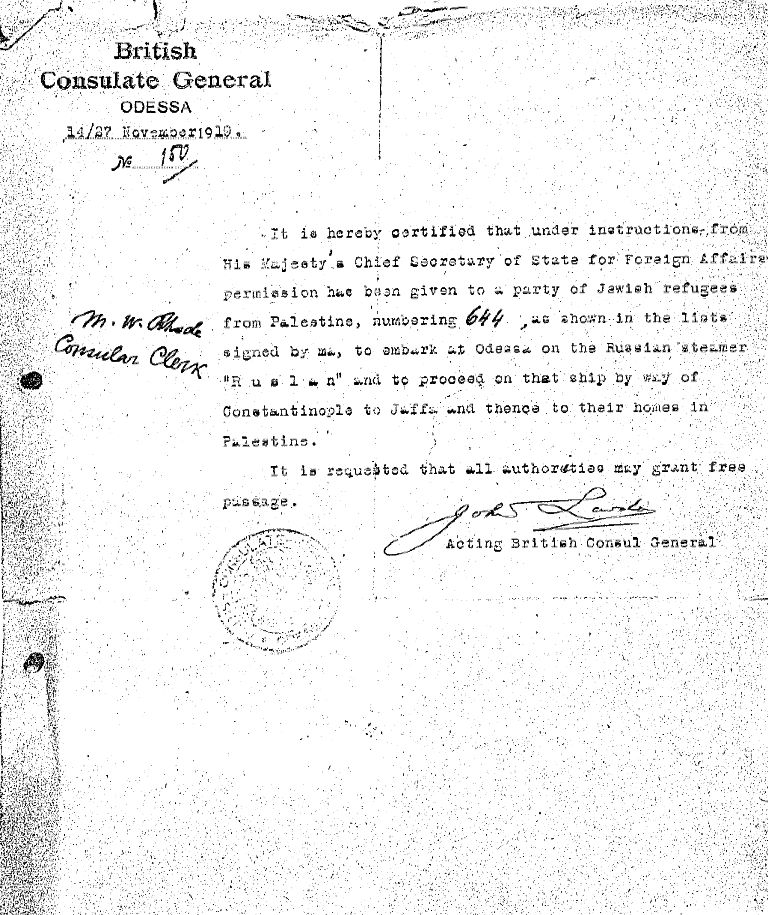 The Central Zionist Archives houses documents of the Third Aliyah, some of which regard the arrival of Ruslan, including passenger lists.