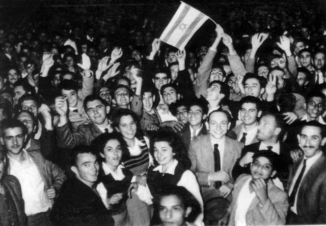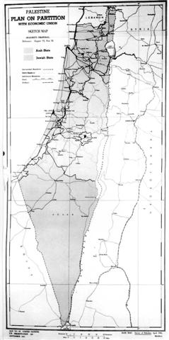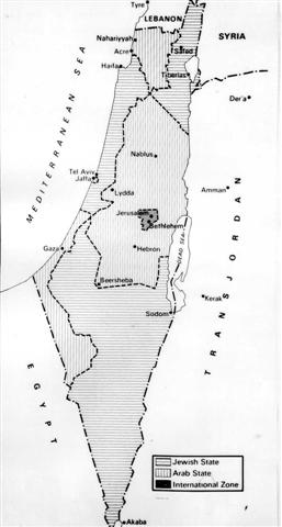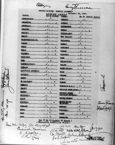 "The UN Assembly approves the recommendation of the UNSCOP Committee by a majority of more than two-thirds (33 for, 13 against and 10 abstentions) - an end to the British mandate in Palestine, and the establishment of two states (Jewish and Arab) as well as an international zone in Jerusalem. The Jews in Eretz Israel and around the world rejoice; the Arabs threaten war." (Naor: Zionism. The First 120 Years. Timeline, Articles, Documents, Glossary. The Jewish Agency for Israel,The Publishing House of The Zionist Library, 2002, p. 137)