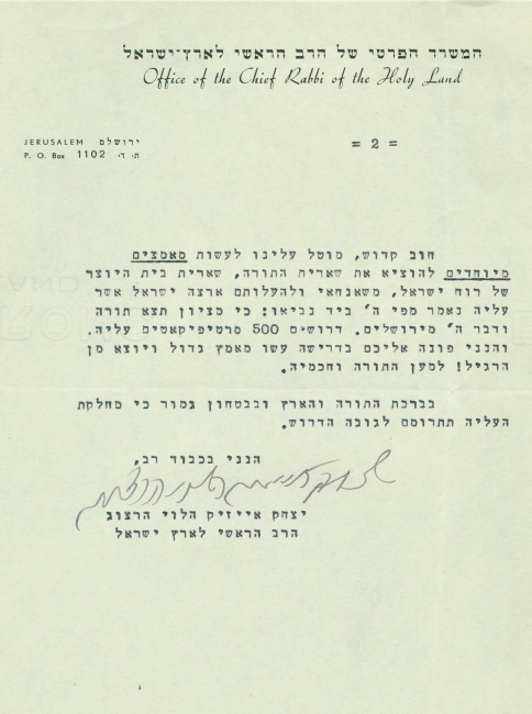 בסיוון תש"ו (1946) הגיע למחלקת העלייה מכתב מהרב הראשי יצחק הרצוג, שבו הוא ביקש סיוע בהעלאת 500 בחורי ישיבות מאירופה, שנמלטו ליפן בזמן מלחמת העולם השנייה, ולאחר מכן נשלחו לשנחאי. הרב הרצוג כתב במכתבו, שגדולי תורה רבים נרצחו בשואה, וכעת יש הזדמנות להציל את ה"גחלת האחרונה" – התלמידים והרבנים שהגיעו לשנחאי. לשון הבקשה מעיד על הדחיפות והמצוקה שבה היו נתונים: