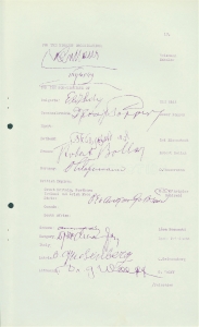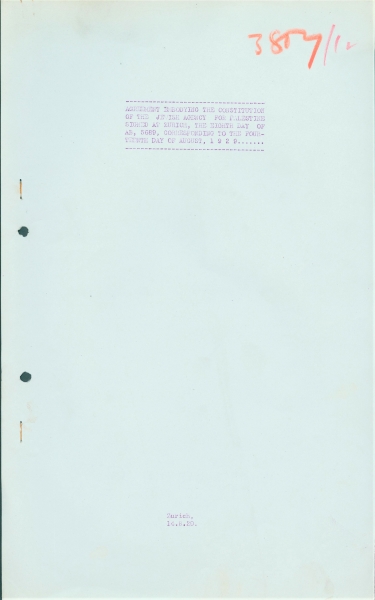 הקונגרס הציוני ה- 16 התכנס בציריך ב-14 באוגוסט 1929 על מנת לאשר את הקמתה של "הסוכנות היהודית". ויצמן שכנע את חברי התנועה הציונית בדבר נחיצות החתימה על ההסכם בעקבות המשבר בארץ ישראל וזאת למרות המחלוקות האידיאולוגיות עם הארגונים הבלתי-ציונים. דף החתימות המופיע כאן כולל את חתימותיהם של נחום סוקולוב וחיים ויצמן, נציגי הציונים, ולואי מרשל ופליקס ורבורג, נציגי הבלתי-ציונים בארה"ב.