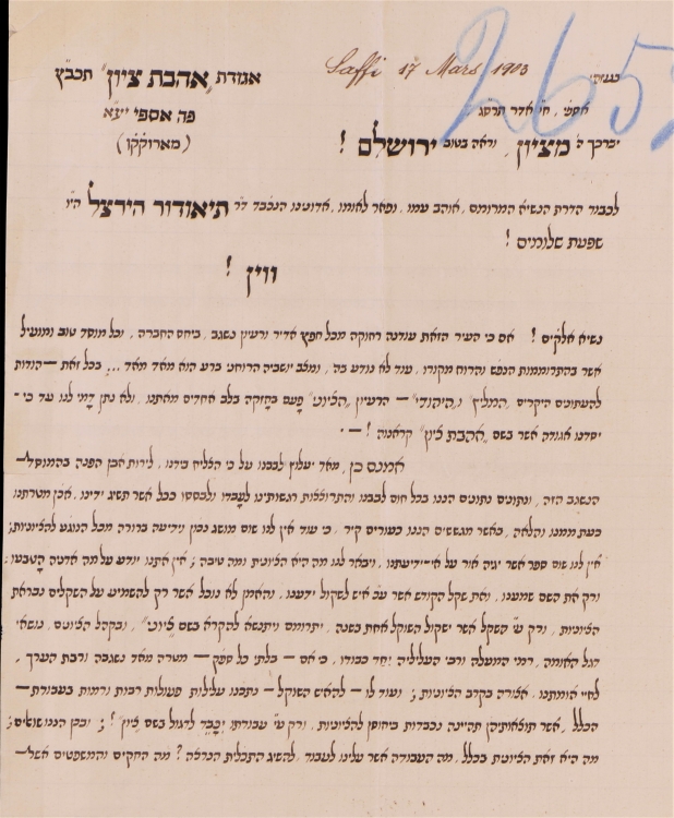 מכתבה של אגודת "אהבת ציון" לבנימין זאב הרצל משנת 1903 פותח לנו צוהר לראשית ההתארגנות הציונית במרוקו. זו התנהלה ללא כל הכוונה מגבוה וללא כל תיאום בין קבוצות שונות, שנענו לקריאה של התנועה הציונית לאחר ייסודה בקונגרס באזל ב-1897. כאשר נשלח מכתב זה כבר היו קיימות במרוקו שתי אגודות ציוניות בשתי קהילות רחוקות מאוד זו מזו: האחת - "שערי ציון" במוגדור, והשנייה - "שיבת ציון" בתיטואן (הוקמו בקיץ 1900), אך מהמכתב עולה, כי חברי אגודת "אהבת ציון" לא היו מודעים להן.