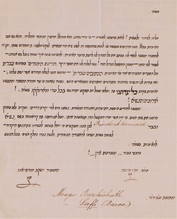 אגודת "אהבת ציון" נוסדה בסאפי שעל החוף האטלנטי במרוקו. מאיר ברששת נבחר כנשיא כבוד של האגודה, וכמזכיר נבחר יעקב מורסייאנו. שניהם חתומים על המכתב, אך ברששת הוא זה שכתב אותו. המכתב, המסוגנן בכתב רש"י, מפגין הערצה נלהבת להרצל ולתנועה החדשה, וגדוש בתארי כבוד למנהיג הציוני. הרצל זוכה לכינויי השבח "הנשיא המרומם, אוהב עמו ופאר לאומו, אדוננו הנכבד" ומתואר כ"נשיא אלקים".