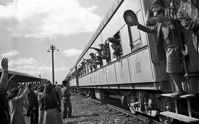 ילדי טהרן מגיעים לתחנת הרכבת ברחובות, מבט מבחוץ, 1943 (NKH\483416)