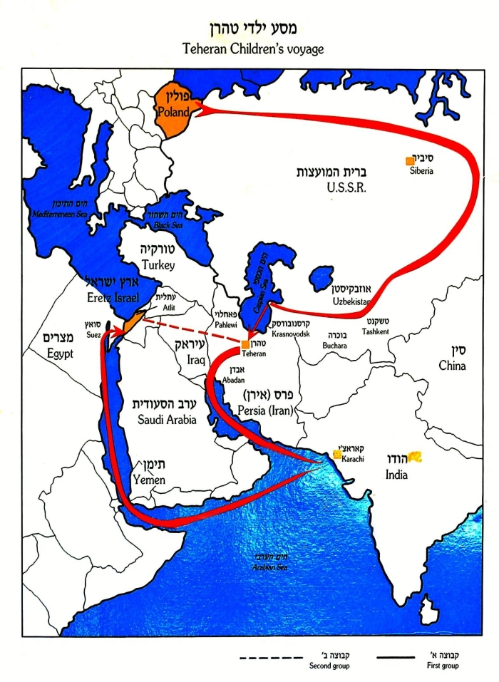מפת המסע של ילדי טהרן בשנים 1943-1939 (PHG\1413963)