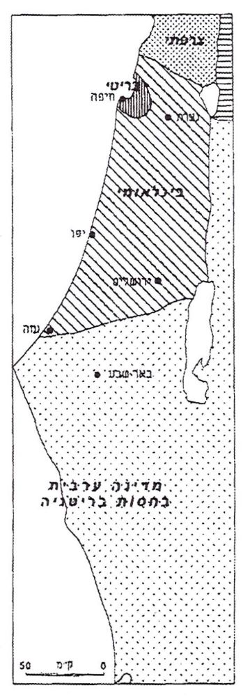 עם נקודה בים התיכון בין הערים עכו וצור. השטח מדרום לקו השרירותי אמור היה להיות בינלאומי