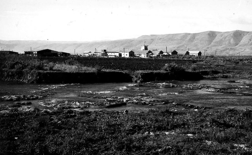 מראה כללי של הקיבוץ על רקע החרמון, 1972. צלם: זאב רדובן, אוסף קרן היסוד (PHKH\1262325)​