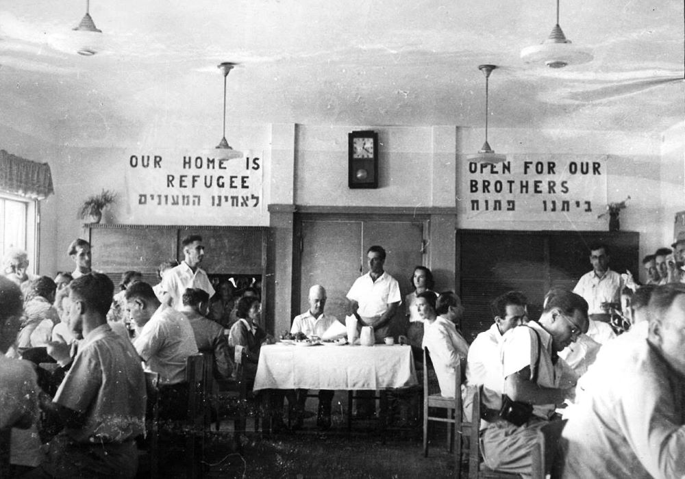 קבלת הפנים לחברי וועדת אונסקו"פ בחדר האוכל של קיבוץ דן, 1947. צלם: טים גידל, אוסף קרן היסוד (PHKH\1301839)